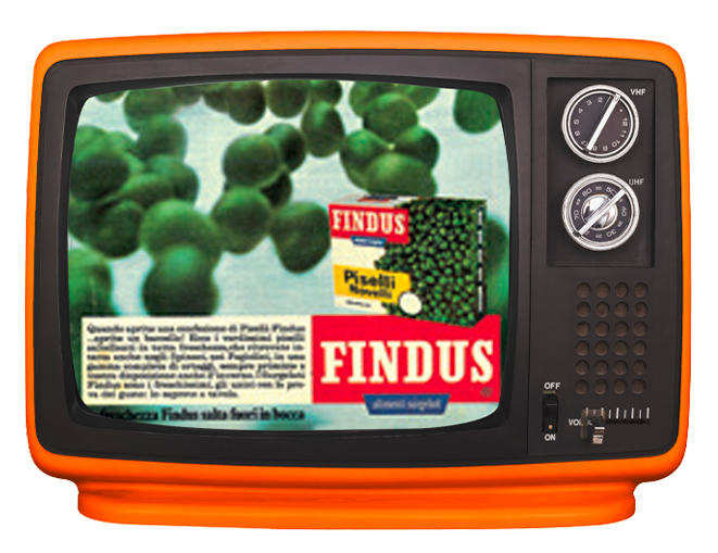 Sul fronte dell'advertising in televisione, i prodotti Findus entrarono in punta di piedi nelle case degli italiani: per la réclame di Piselli e Bastoncini si scelsero le rubriche pubblicitarie Intermezzo e Arcobaleno, in onda sulle reti Rai tra la fine degli anni Sessanta e i primi anni Settanta.