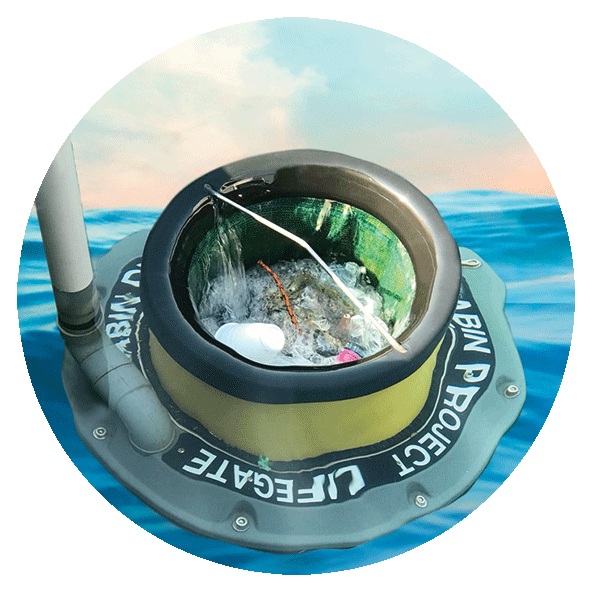 È un cestino “mangia-rifiuti” in grado di catturare rifiuti galleggianti, incluse plastiche e microplastiche fino a 2 mm e microfibre fino a 0,3 mm di diametro;