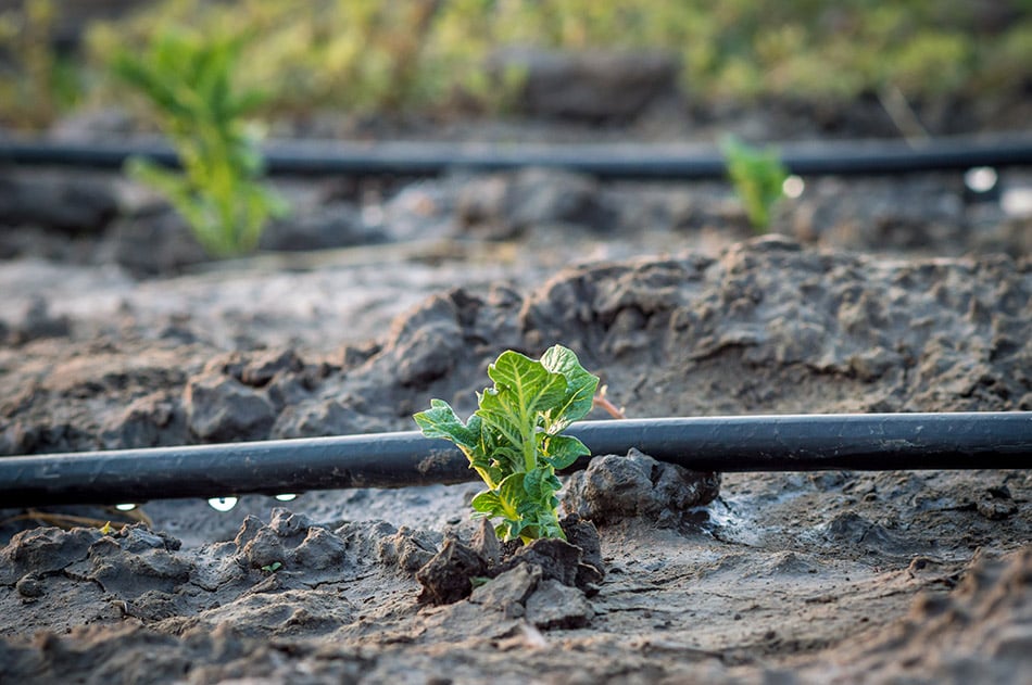 Come funziona quindi il sistema di irrigazione a goccia? E quali sono le sue caratteristiche? Il sistema a goccia è una delle tecniche di irrigazione tra le più antiche, nata già nei primi secoli a.C., si è diffusa in Germania a partire dal 1860, ed è stata poi perfezionata in Israele grazie all’uso della gomma e della plastica. Viene utilizzata in agricoltura sostenibile perché consente di dare acqua alle coltivazioni in modo continuativo, evitando sprechi di risorse non solo idriche, ma anche energetiche. È costituita da un sistema di tubi a bassa pressione (tramite cui passa l’acqua) e una serie di gocciolatori, piccoli strumenti che, goccia dopo goccia, forniscono costantemente alla pianta la quantità d’acqua necessaria, arrivando esattamente dove serve (ovvero nel terreno vicino o addirittura alle sue radici) e senza il rischio di disperderla. L’irrigazione può essere continua o avvenire “a intervalli” in momenti precisi (in base ai bisogni della singola coltura o alle condizioni climatiche) e consente così di risparmiare risorse idriche senza danneggiare la qualità o la crescita della pianta.