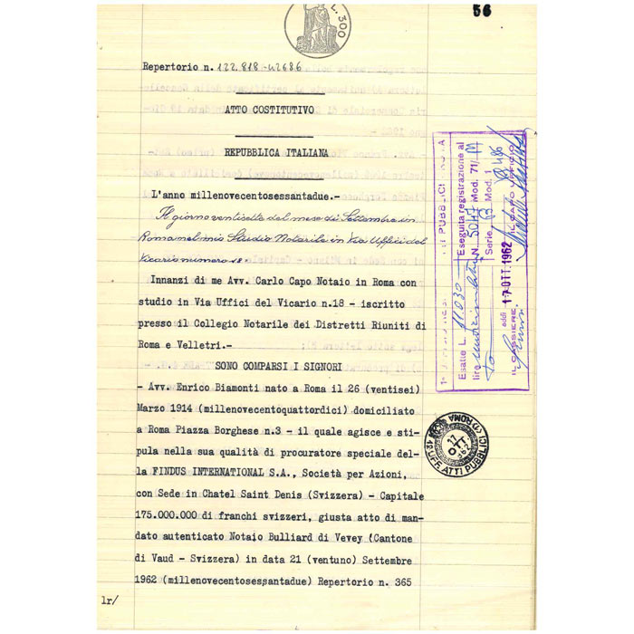 La nuova proprietà di Findus decide di investire in Italia, Paese di approvvigionamento di alcune selezionate materie prime vegetali. Così il 27 settembre 1962 si costituisce la società Findus Spa, con sede a Cisterna di Latina, dove sorgerà di lì a poco un moderno impianto progettato per la surgelazione di prodotti per lo più orticoli. Quella dell'Agro Pontino è, infatti, un'area vocata alla coltura di specifiche tipologie di ortaggi, soprattutto spinaci e fagiolini.